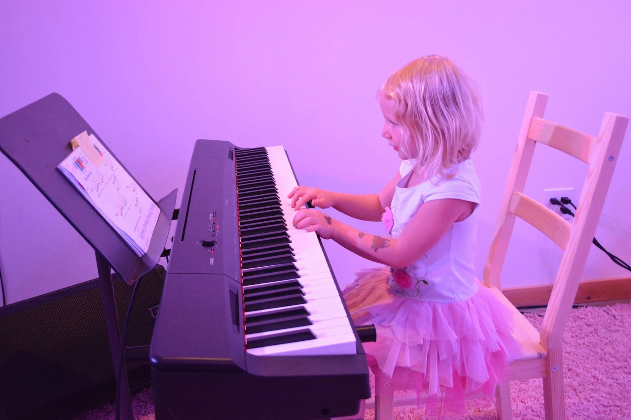 It is ideal if you do have a piano at home before starting lessons, but you can start lessons with our piano teachers by using an electric keyboard to practice on. Most of our students rent or buy small electric keyboards to practice on at home. We recommend a keyboard that has regular sized keys and is fully-weighted, or at least has a touch-sensitive response. A touch-sensitive keyboard means if you press a key harder it will play louder, and if you press a key softer it will play quieter. Fully-weighted keyboards will have this too, but the keys will also feel like there is weight behind them when you push them, so it is closer to the feel of a real piano.